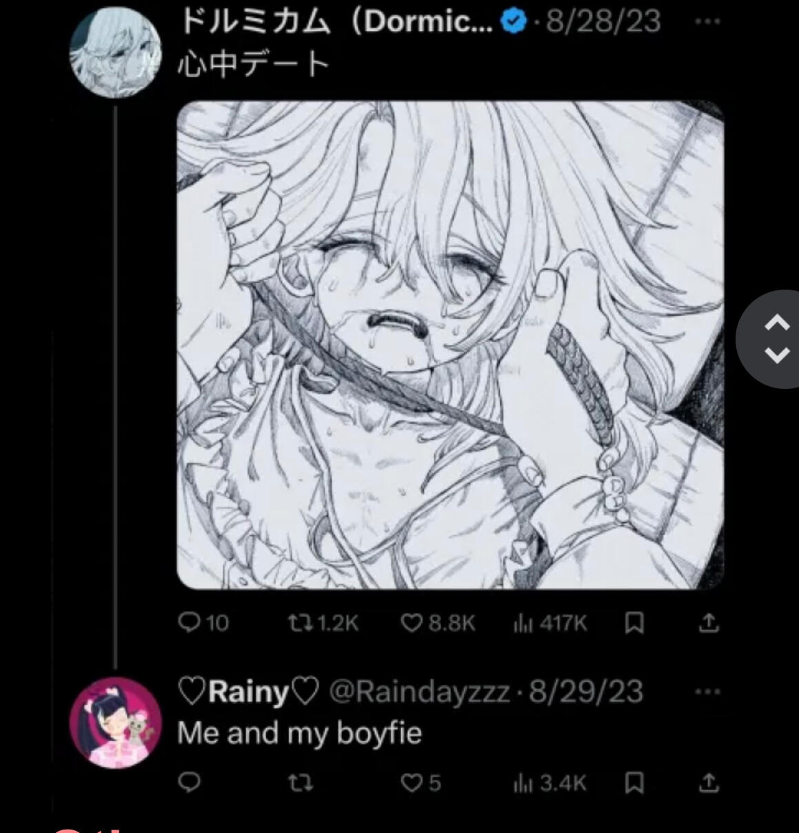 Dollcloud used her Twitter account, “Rainy”, to post and repost vent art.But, the Twitter account was not linked to her discord or her TikTok (CC platform). However, it did share the same username as her anonymous message link.